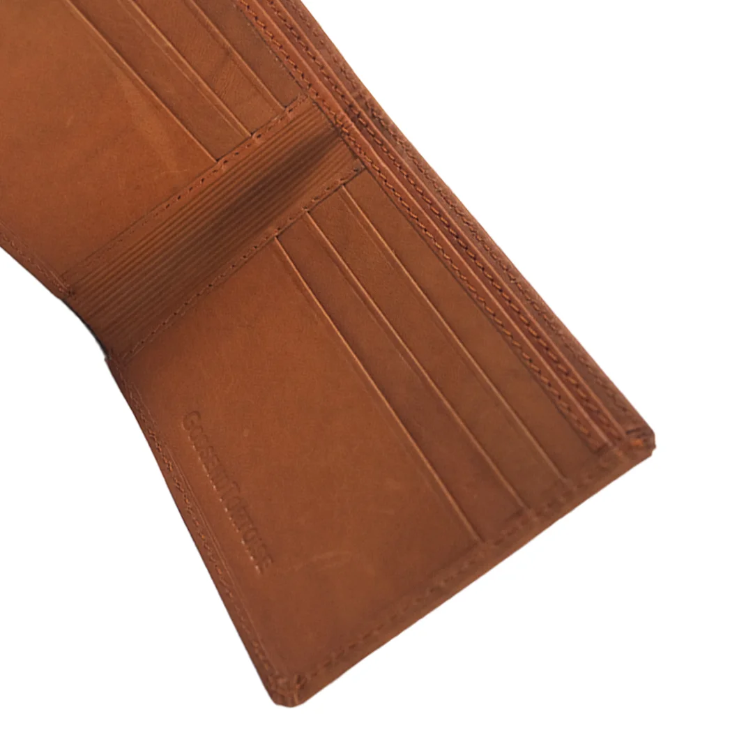 Open it and you’ll find a thoughtfully arranged interior: multiple card-slots to carry your essentials (cards, IDs), a full-width note compartment for currency, and additional slip pockets for receipts or small documents. The fold design ensures it sits comfortably in your pocket or bag, while the leather build gives it lasting resilience — as you carry it, the surface will develop a patina that reflects your personal style.